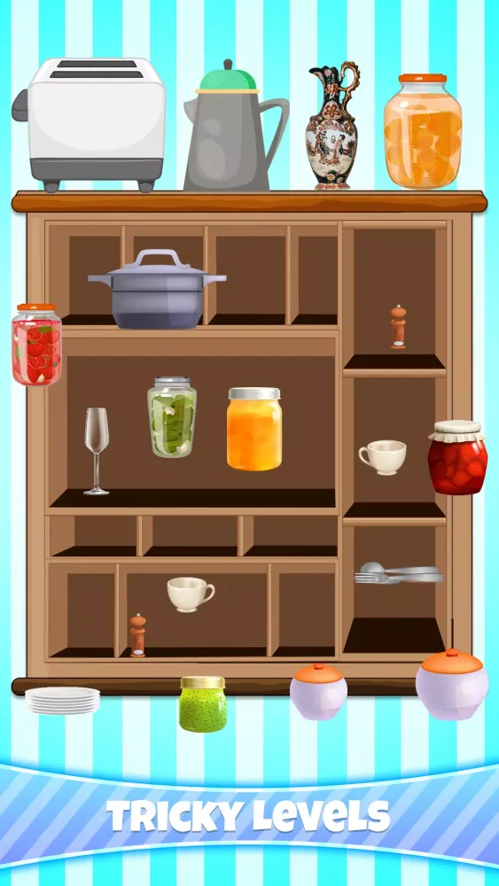 - Brain Game and Challenging Puzzles: Dive into a world of mind-bending puzzles that require clever planning and precise execution. Tackle intricate arrangements and prove your mettle as the ultimate Cupboard Organizer!