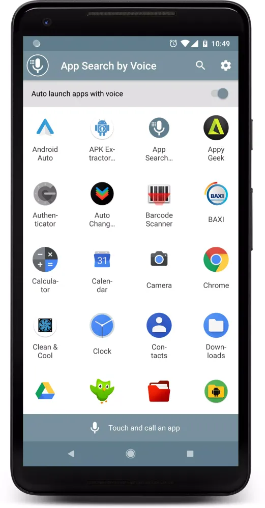 Integration with Device: Experience a fully integrated app search experience. App Search by Voice cleverly works alongside your device’s native features, allowing for seamless transitions and quick access to installed applications.