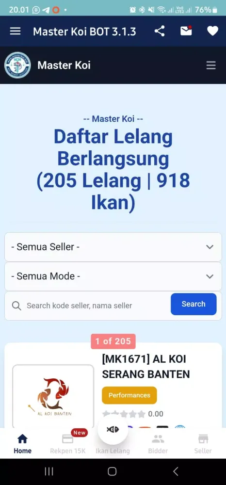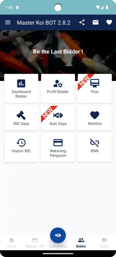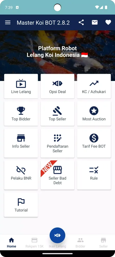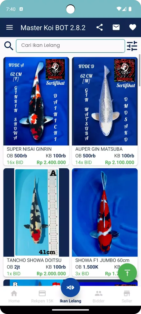 With the Master Koi BOT application, auction participants can engage in auctions effortlessly from anywhere and at any time. Simply install the app from the PlayStore, and you're ready to bid on some of the finest koi fish available. The "Ikan Auction" feature highlights the best and most sought-after koi fish, helping bidders make quick decisions.