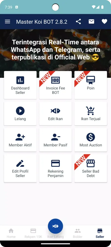 Experience the best koi auction platform with advanced features, a user-friendly dashboard, and comprehensive statistical data to aid business analysis. Join us now as a Seller and unlock optimal benefits and advantages. Register your shop, farm, or merchant on the Master Koi BOT Android application and become part of the leading koi auction community in Indonesia.