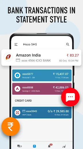- Based on SMS, Mezo automatically creates statements of your bank accounts and credit cards.