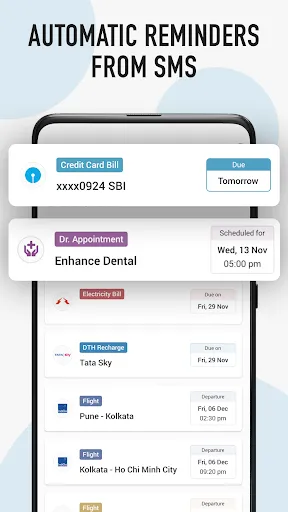 - It also creates smart reminders about your upcoming travels via flight, bus or train.
