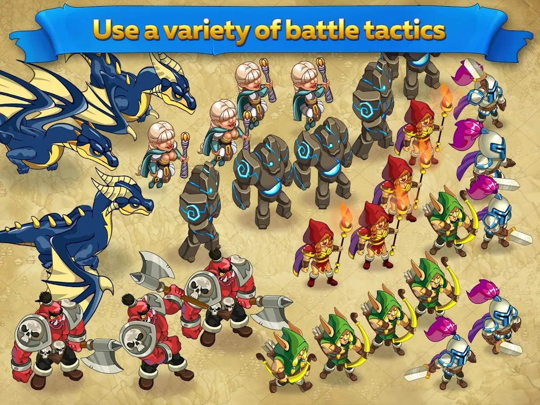 ✔ Epic heroes: train your own Warlock and Warrior who will help you conquer the world with powerful spells and deadly swords. They are the ones who will lead your army into bloody battle and be the key to victory over the most vicious invaders.