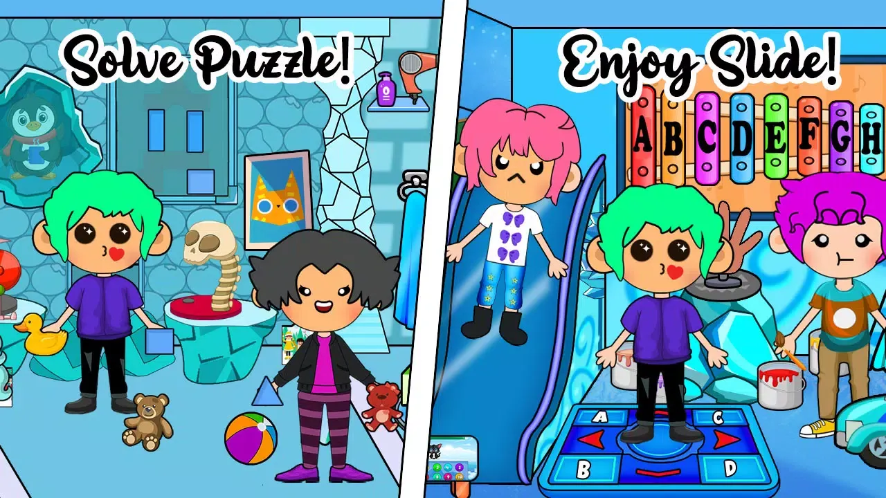 As you step into the selection scene, you'll be greeted by the breathtaking view of a grand ice castle surrounded by a whimsical playground. Soft snowflakes gently fall from the sky, adding a magical touch to this enchanting landscape. The castle is a treasure trove of exciting activities, blending fun with educational experiences tailored for children of all ages.