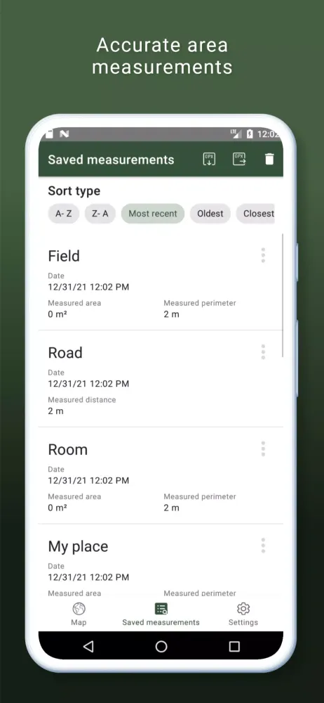 - Sorted Measurements: Organize saved measurements by name, date, distance, or size.