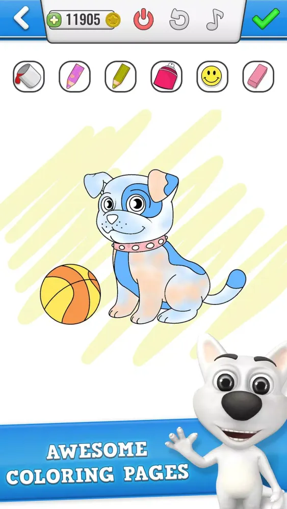 My Talking Dog 2 introduces a unique feature you won't find in other virtual pet games – Dog Coloring Pages! Enjoy a mini-dog coloring book filled with adorable puppy pictures. Fill in the pages and share them with friends and family for endless fun!