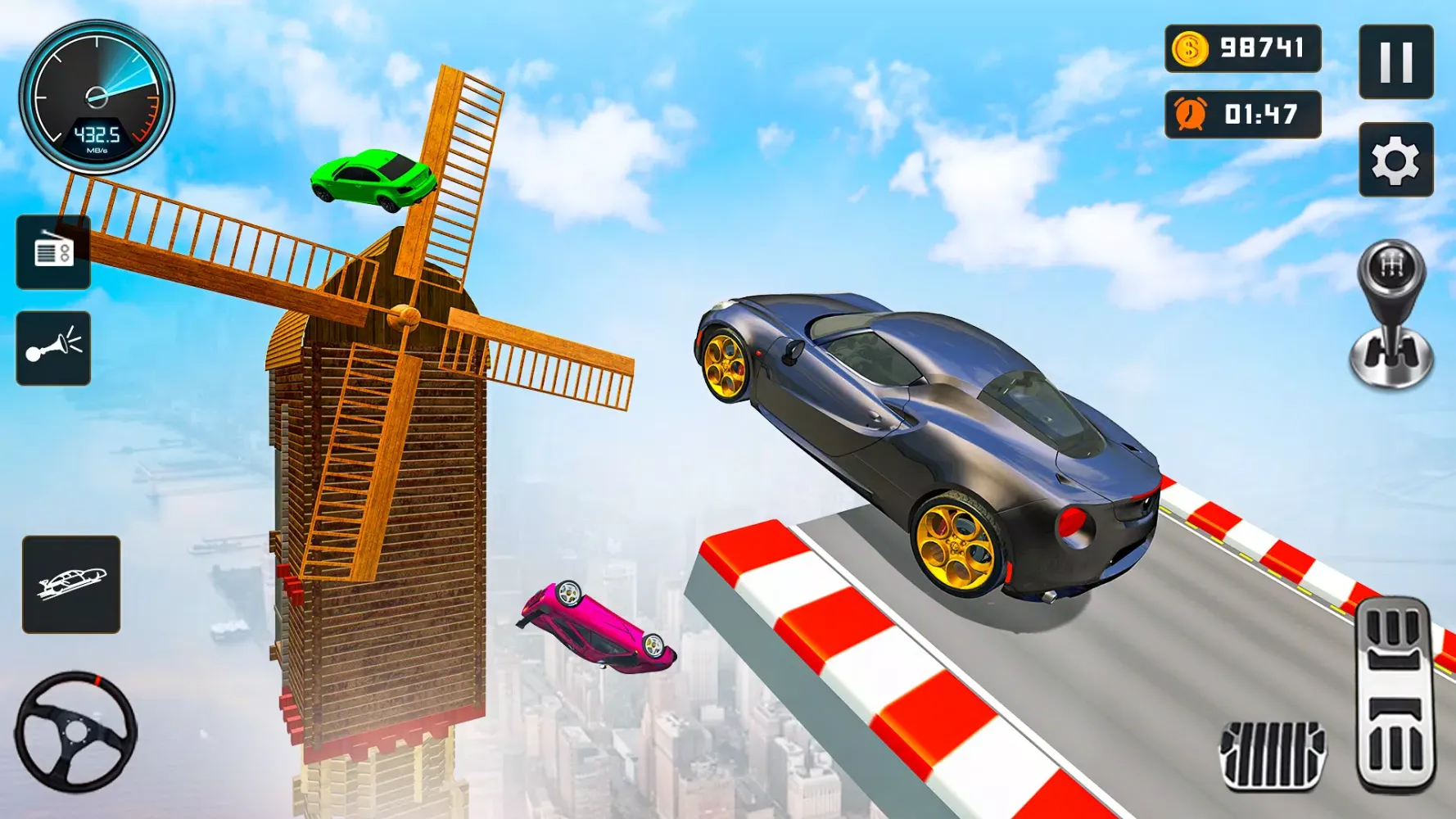 Get ready to take on the ultimate ramp car games challenge. Once you're in the driver's seat, buckle up, grip the steering wheel tightly, and prepare for some of the most realistic and intense car racing and stunt experiences available. With modern cars at your disposal, you'll need to navigate tricky challenges and showcase your driving prowess. The game offers various control options, including tilt, steering, and buttons, ensuring smooth and engaging gameplay.