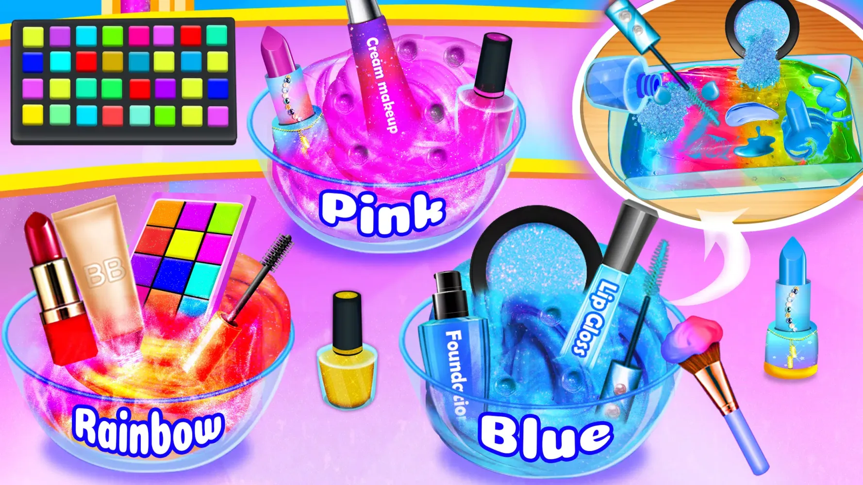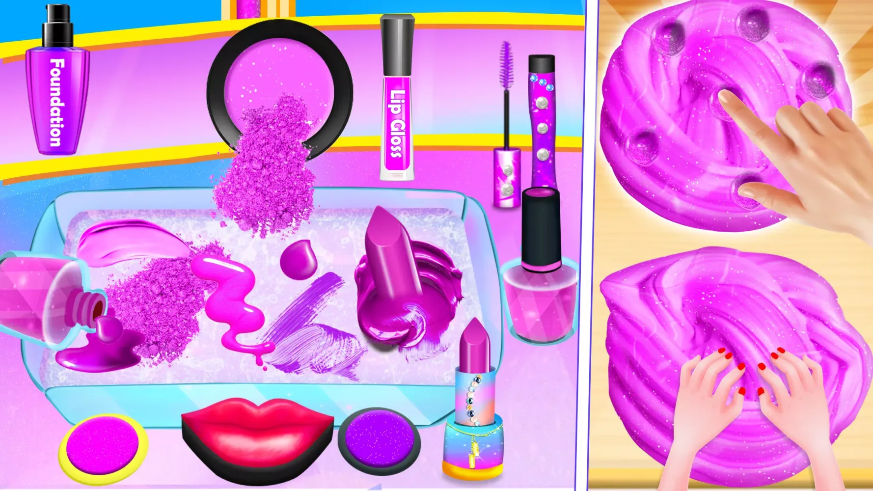 Welcome to "DIY Makeup Mixing into Slime," an immersive and innovative game designed to blend creativity, relaxation, and fun! This unique application allows users to mix colors, textures, and ingredients as if they were crafting their own magical slime. Inspired by the soothing world of slime simulators, this game is perfect for those looking to unwind, experiment, and explore endless possibilities in a stress-free environment. Whether you're a fan of ASMR sounds, love experimenting with makeup, or simply enjoy squishy, gooey fun, this game offers something for everyone.
