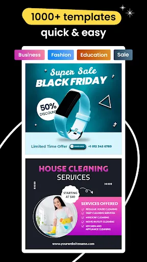 You don't need to hire a graphic designer to make a creative advertisement for your product or business. We've designed a good collection of advertisement templates and made them editable through this advertisement maker app.