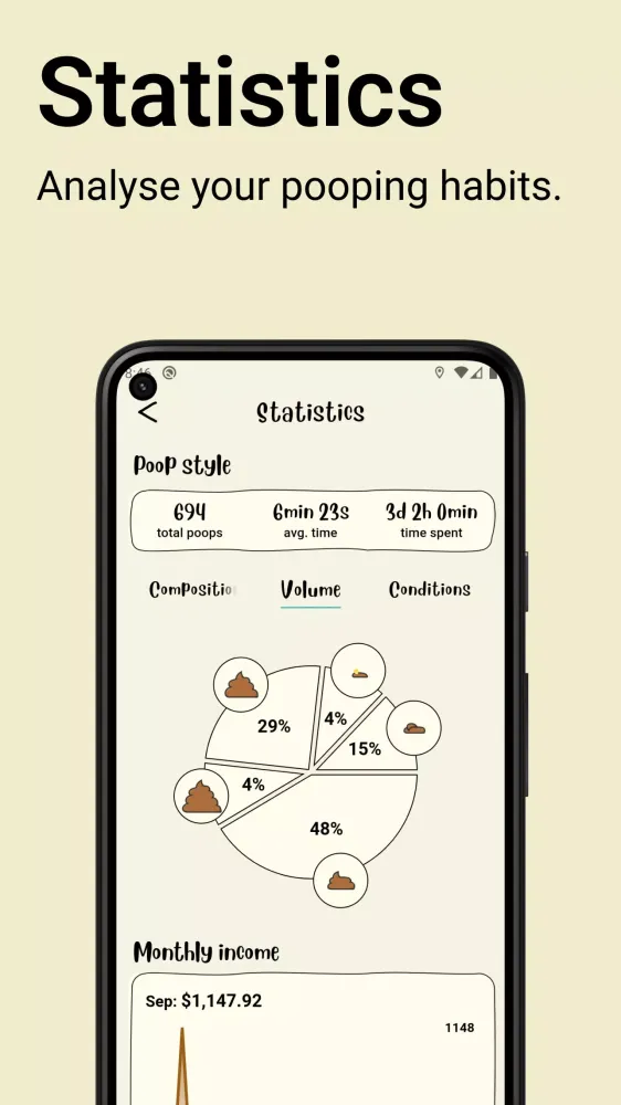 Unlock detailed insights and calendar views of your pooping patterns. Poopie makes it easy to understand your bowel habits while adding a splash of fun to your daily routine. By analyzing your data over time, you can identify trends, improve your digestive health, and maintain a balanced lifestyle.