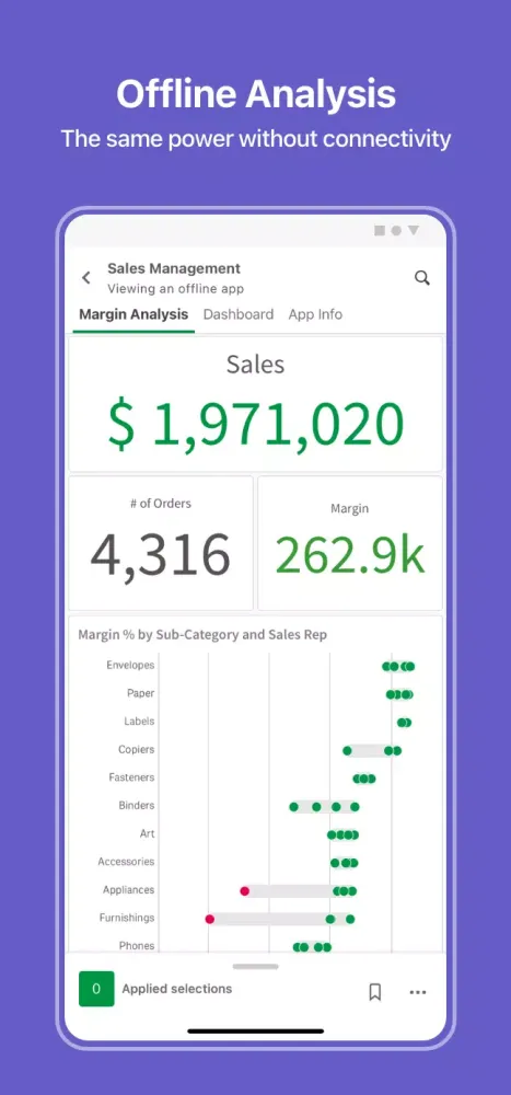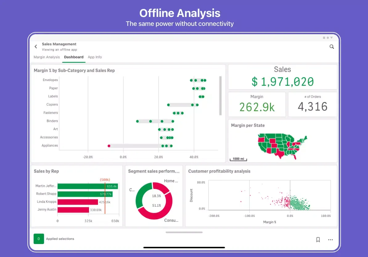 In dynamic field environments, where conditions can change rapidly and questions may be unpredictable, traditional static reports and visualizations fall short. Qlik Sense Mobile transforms this paradigm by equipping your workforce with the tools they need to take decisive action and resolve issues on-the-go. No longer do you have to rely solely on connectivity-dependent solutions. With Qlik Sense, you can act decisively at the point of decision, leveraging the full potential of interactive mobile analytics.