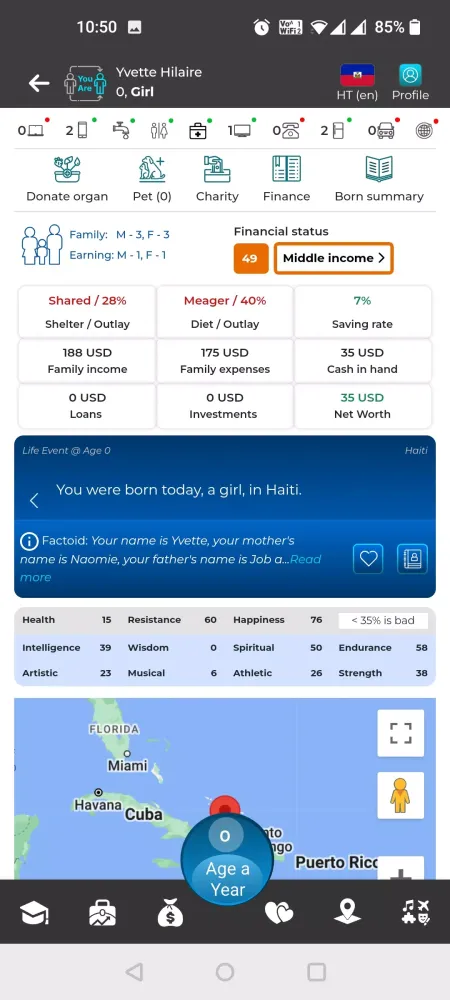 "Real Lives Sim: Face Global Statistics, Craft Your Tapestry of Human Experience." Immerse yourself in a world where every decision shapes your unique life story. Real Lives offers a captivating journey through the diverse tapestry of human existence, presenting a window into life's myriad paths across 192 countries. You can embrace the role of a character born from the roll of statistics or personal choice, navigating life's vast landscape from birth to death.