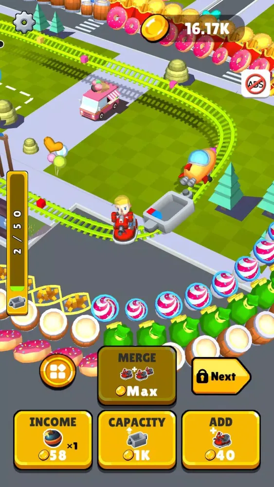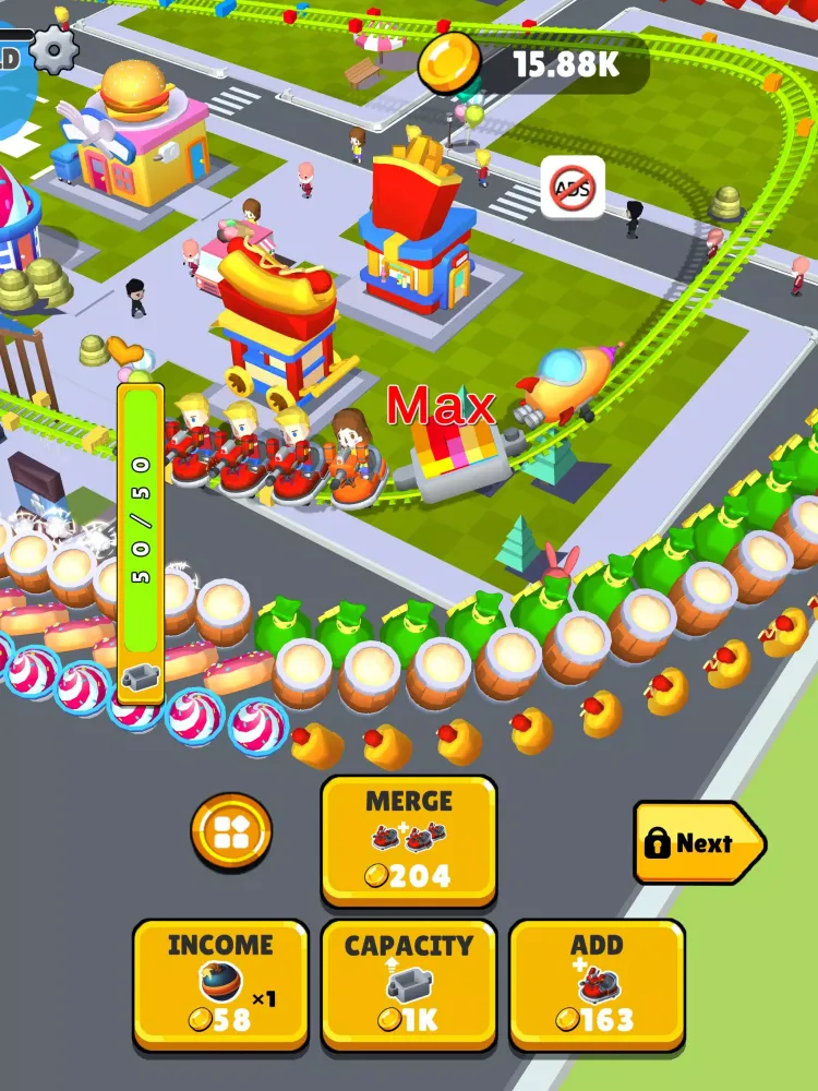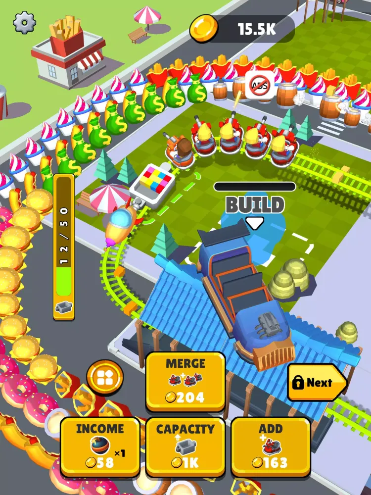 Collect resources strategically and use them to upgrade your facilities and park infrastructure. As you progress, you'll unlock new features, allowing you to improve the efficiency and profitability of your park. Each upgrade brings you closer to achieving your goal of creating the perfect amusement park.