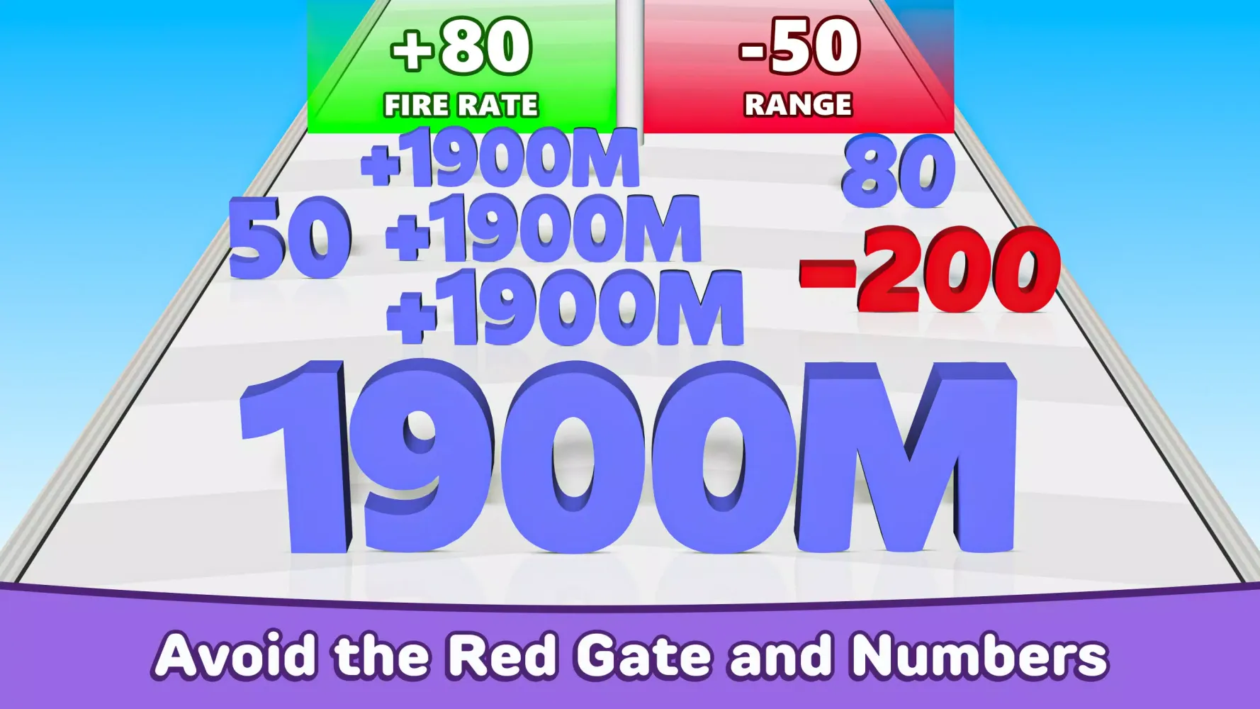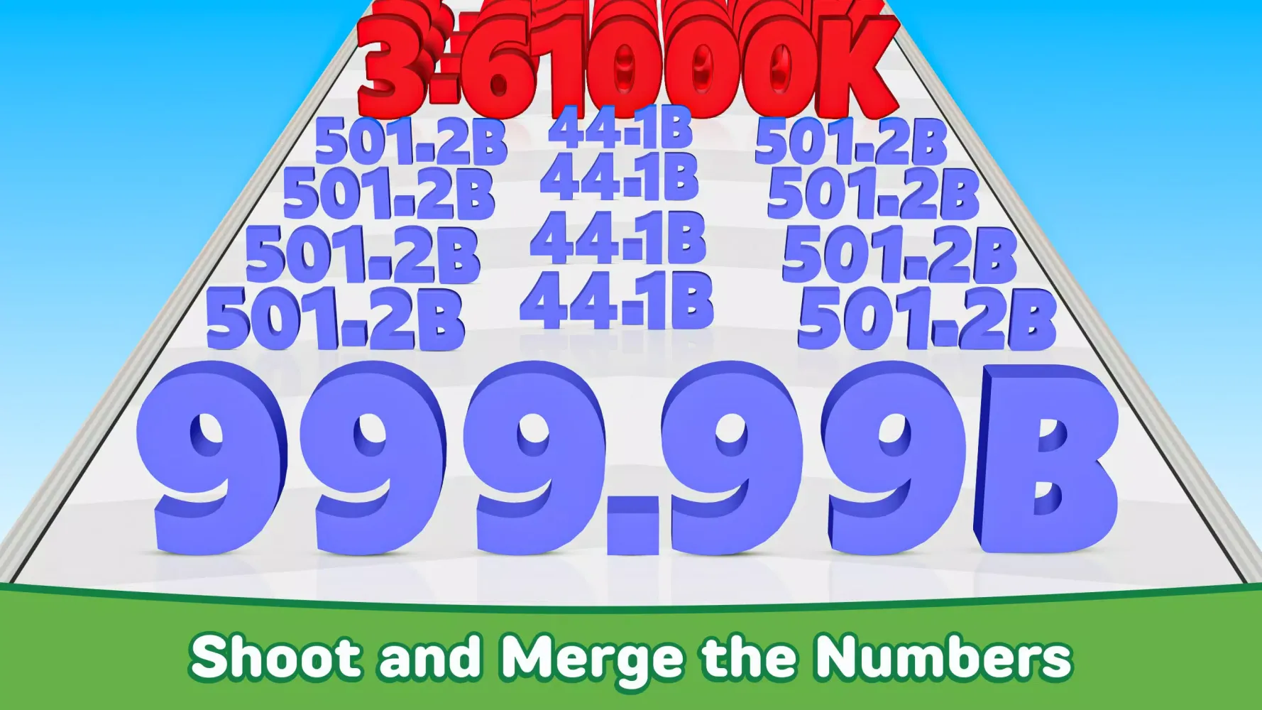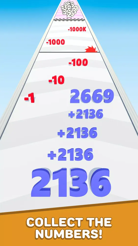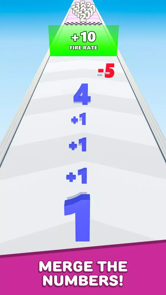 Navigate through the levels by swiping your finger to guide your number along the path. As you progress, you'll encounter gates adorned with plus (+) and minus (−) signs. Hitting the plus gates will allow you to merge with nearby numbers, increasing your total value and size. Conversely, colliding with the minus gates will reduce your number, making it more challenging to achieve your goal. The objective is straightforward yet engaging: keep merging and growing your number until you reach the finish line!
