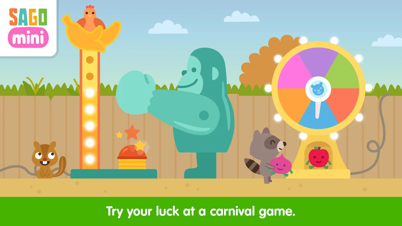 The fun fair is in town, and you’ve got a season pass! Join your Sago Mini pals as you try your luck at classic carnival games, take a spin on a fairground ride or take a hayride trip through the farm. Don’t forget to grab a snack — make your own wacky flavors with the ice cream machine or save some room for the pie-eating contest!