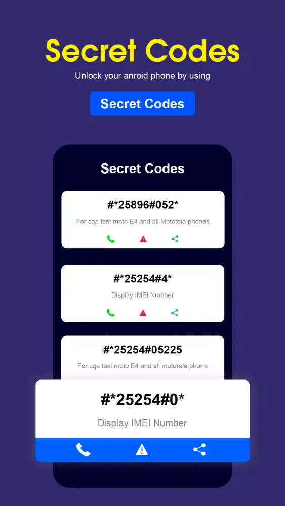 - Direct Dialing: Dial the secret codes directly from the app or copy them to paste into your dialer for quick access.