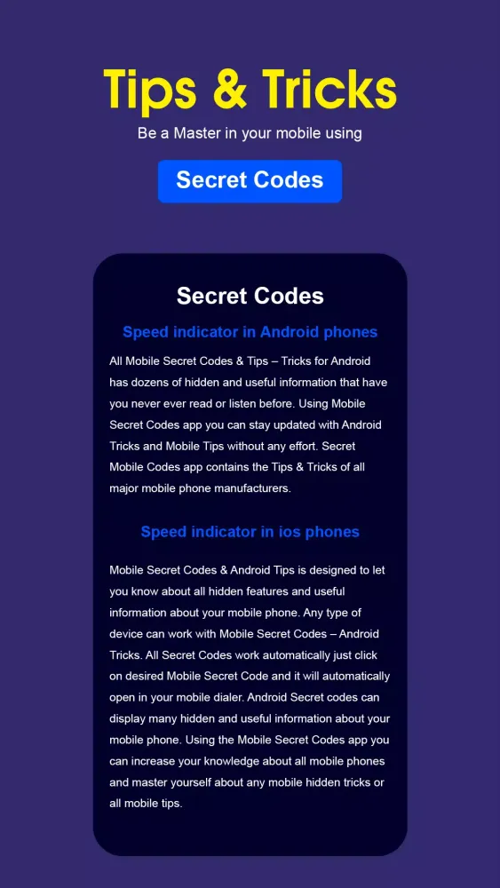 - Latest Updates: Stay updated with the latest secret codes and hacks for Android, allowing you to optimize your device usage.