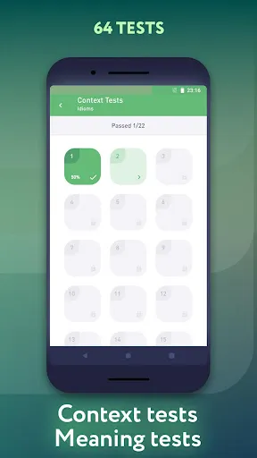But this is not the only way to use the app. There are lots of tests which we have made up to help you improve your skills and knowledge.