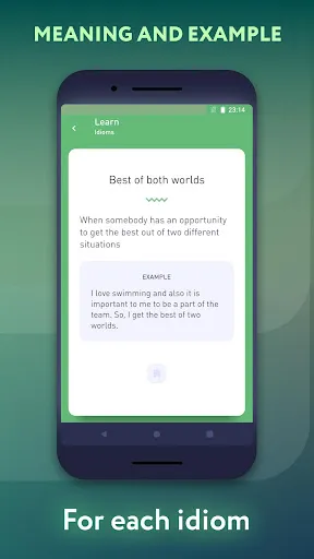 That is why our app is the most easy and suitable way to reach this aim. We have created a list of the most widespread idioms. Each idiom has a clear and simple explanation and an example of the context usage.