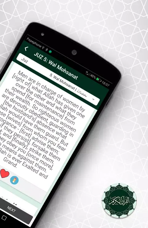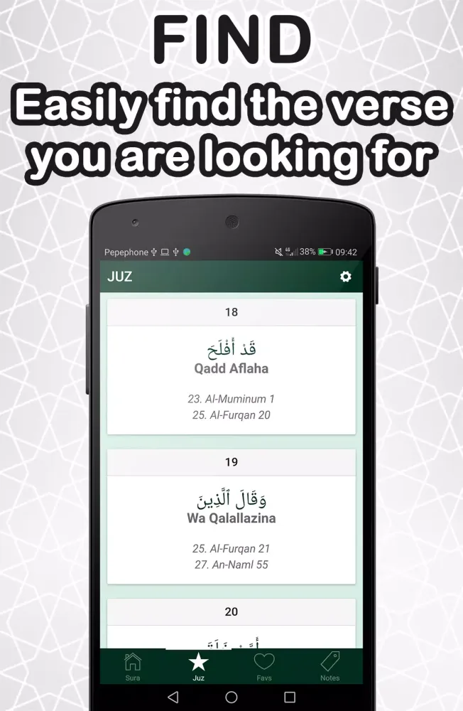- Chapter Navigation: Easily navigate through the 30 chapters (Juz) to find specific sections that resonate with you.