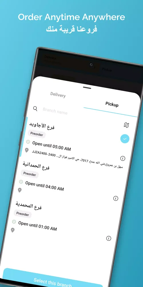 Pickup Option: Prefer to pick up your order yourself? No problem! You can also use the app to place an order for pickup at your nearest branch. Enjoy the convenience of having your food ready and waiting for you when you arrive.