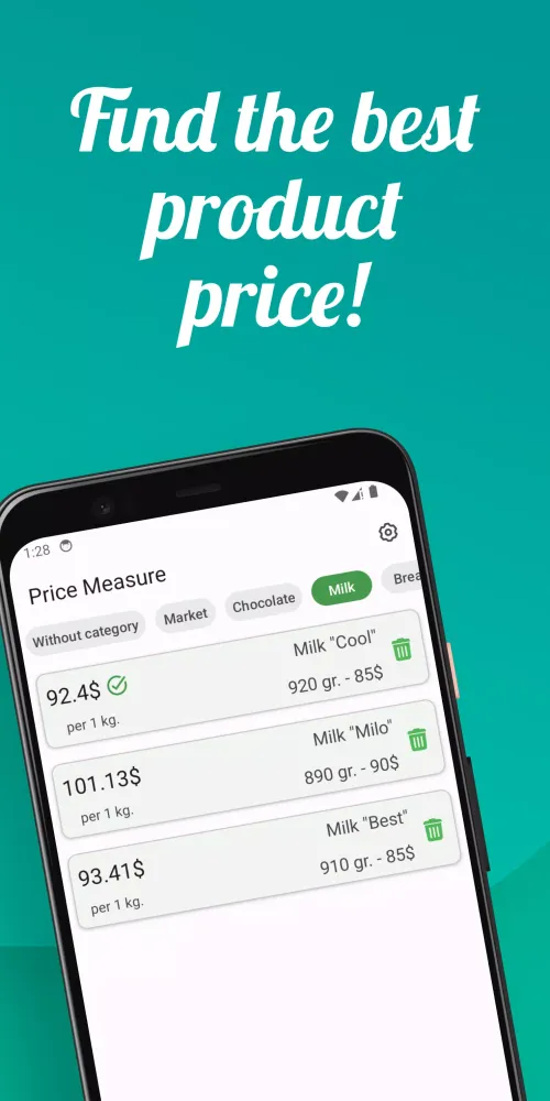 Effortlessly manage your shopping experience with the "Price Meter - Fair Price" application. This powerful tool is designed to help you avoid being misled by pricing tricks in stores. With just a few taps, you can quickly and accurately calculate the price of a product per kilogram, milliliters, or any other unit.