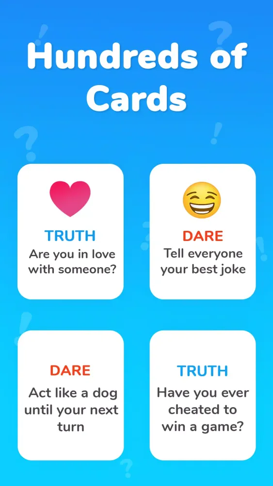 - Over 250 Amazing Truths and Challenges: Surprise your friends with a vast array of questions and tasks that will keep the game exciting and unpredictable.