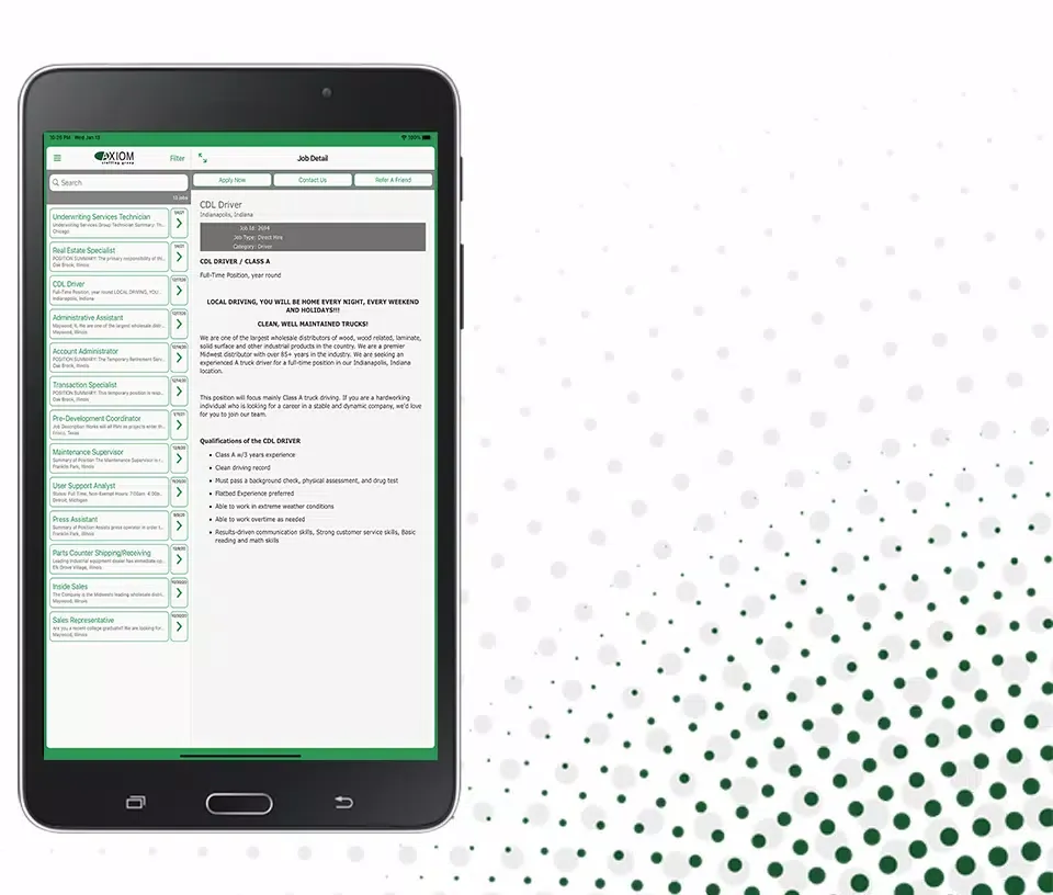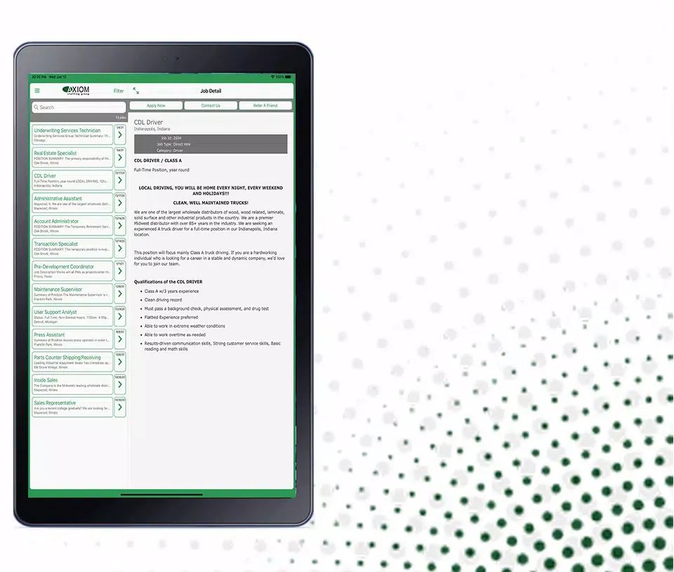 In today's fast-paced world, staying connected is crucial. With the Axiom app, you can search, view, and apply to jobs seamlessly while on the go. Whether you're commuting, traveling, or simply managing your time efficiently, the app ensures you never miss out on potential career opportunities.