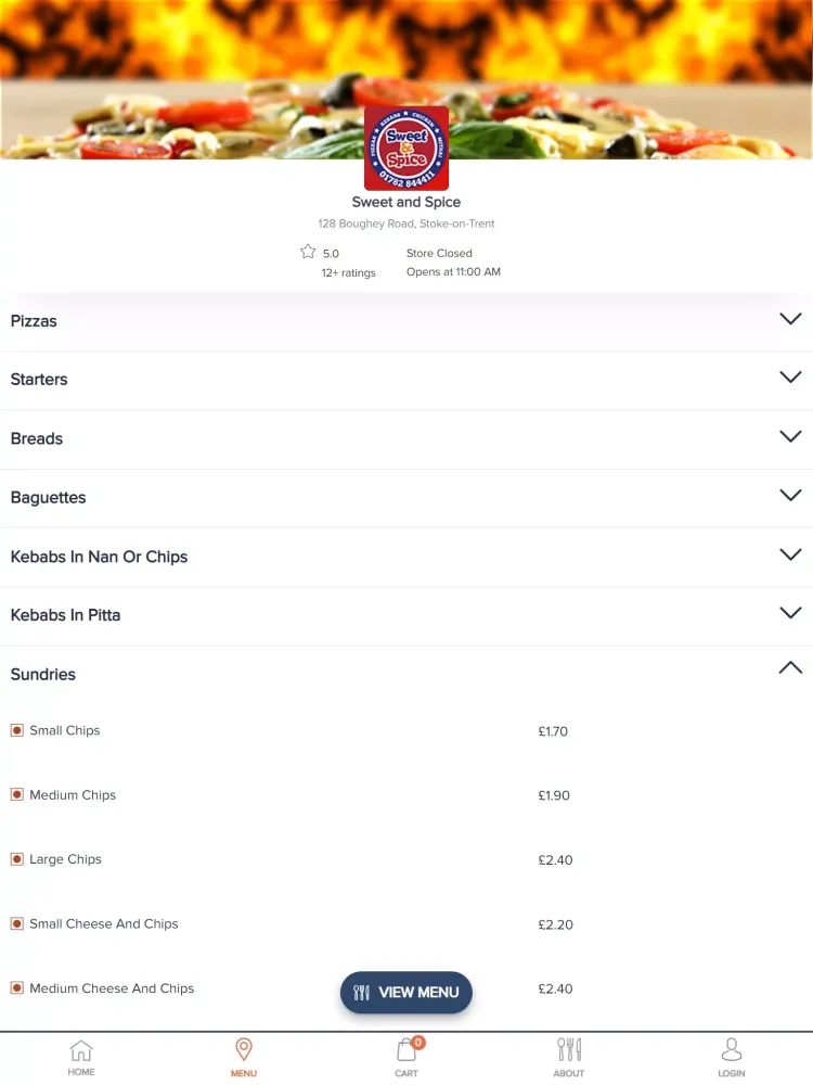 You can now conveniently place your orders online through our dedicated app. Explore our extensive menu, featuring beloved favorites such as Pizzas, Kebabs, Burgers, Southern Fried Chicken, and more. Whether you prefer a classic Margherita or a spicy Kebab, we have something for everyone.