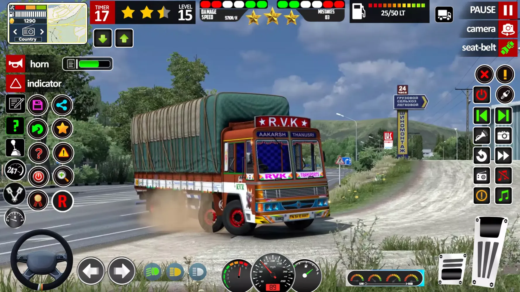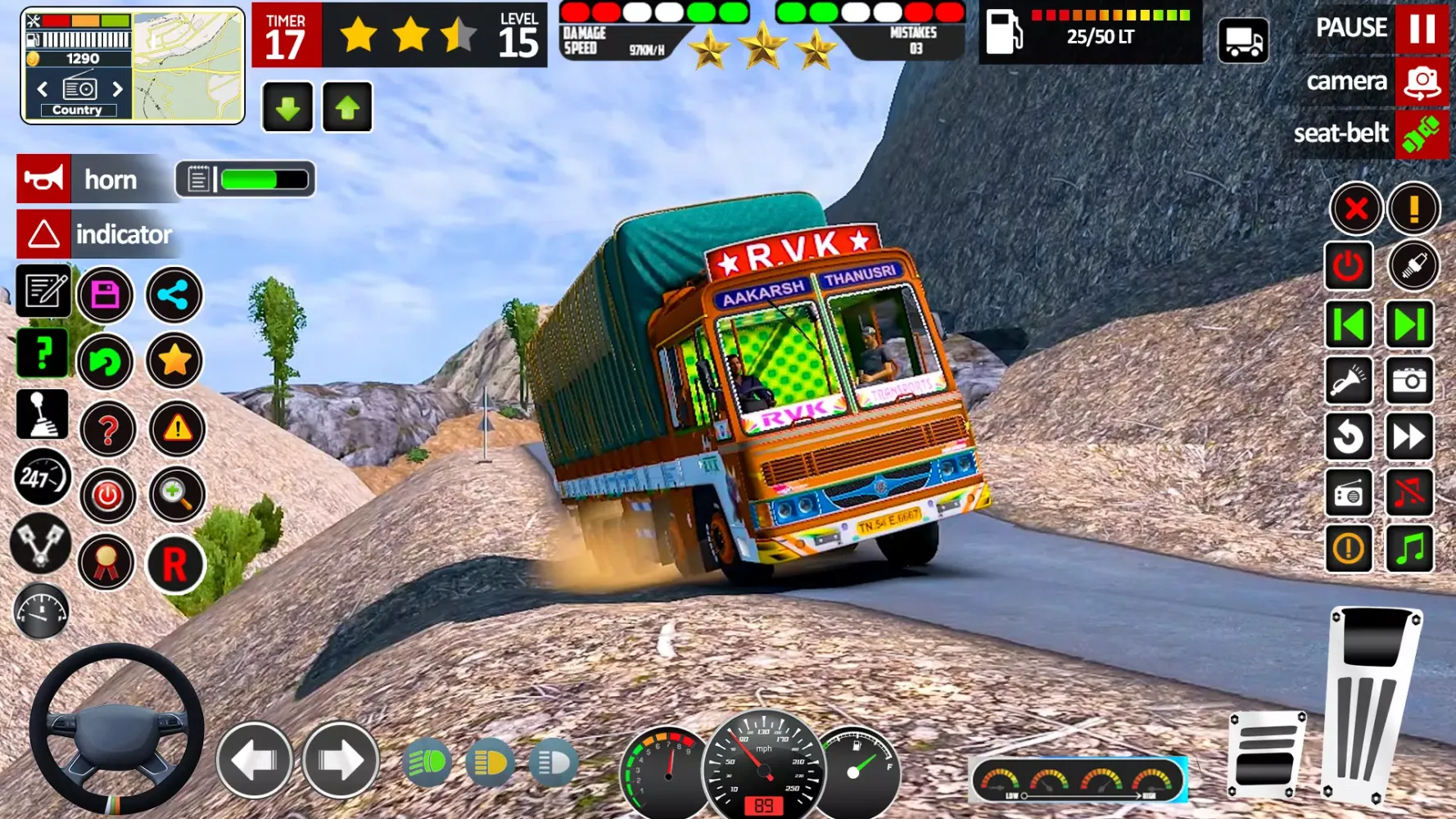 Choose from a wide selection of Indian trucks, including popular brands like Tata, and customize your ride with in-game coins earned by completing missions. The game features a variety of scenarios, such as delivering cargo across the country, tackling impossible roads, and even participating in time trials. Each mission offers a different set of challenges, making every drive a new adventure.