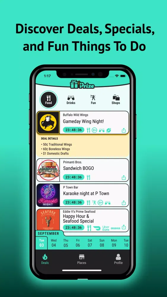 One of the standout features of Prize is its ability to help you uncover unique offers that aren’t available anywhere else. From discounted meals and happy hours to exclusive merchandise giveaways, the app ensures that you never miss out on the latest promotions. As you explore the "Discover" section, you’ll encounter a variety of live and upcoming deals tailored specifically to your city. This means you can quickly find everything from last-minute dinner discounts to weekend events like karaoke nights or trivia challenges—all in one convenient place.