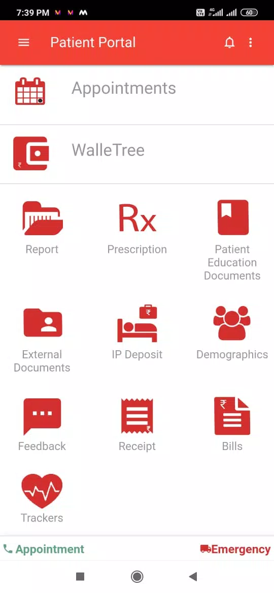 Another key aspect of the Sancheti Patient Portal is its support for managing In-Patient deposits. With a simple interface, users can easily make and track deposits using an IP number, streamlining the administrative process. The app also provides access to receipts for both IPD and OPD services, ensuring that patients can view and manage their bills anytime, anywhere. Furthermore, the integration with WalleTree allows users to access their account, make deposits, and recharge it for OPD use, adding another layer of convenience.