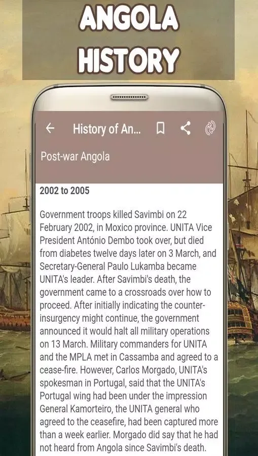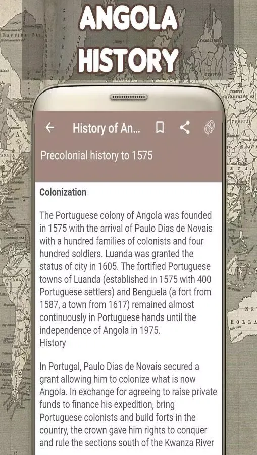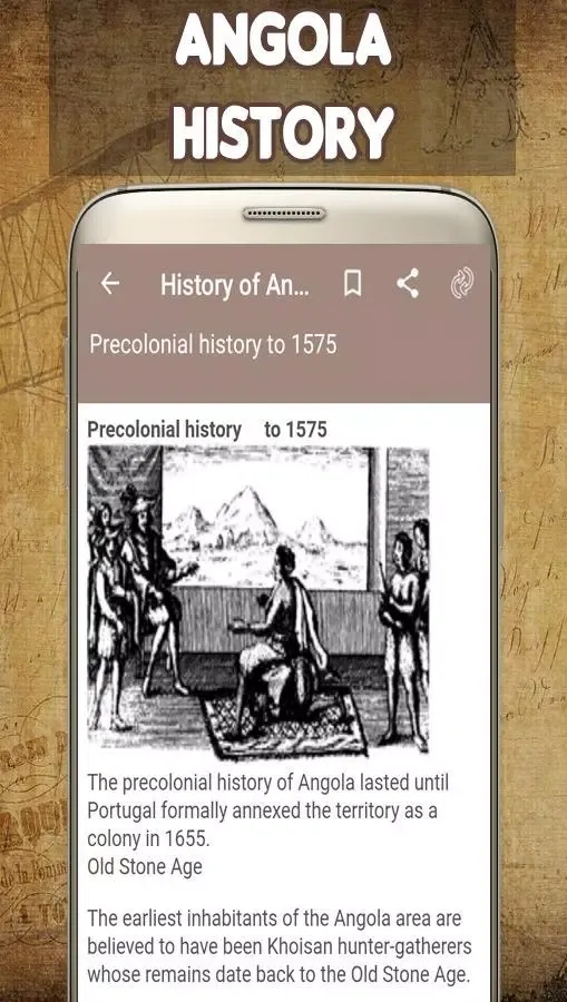 Welcome to History of Angola, an application designed to take you on a journey through the rich tapestry of Angola's past. This app is crafted for everyone who seeks to understand the cultural, historical, and social evolution of this vibrant nation. Whether you're an Angolan citizen eager to learn more about your heritage or a global enthusiast interested in African history, this app offers a seamless experience packed with images and detailed narratives.
