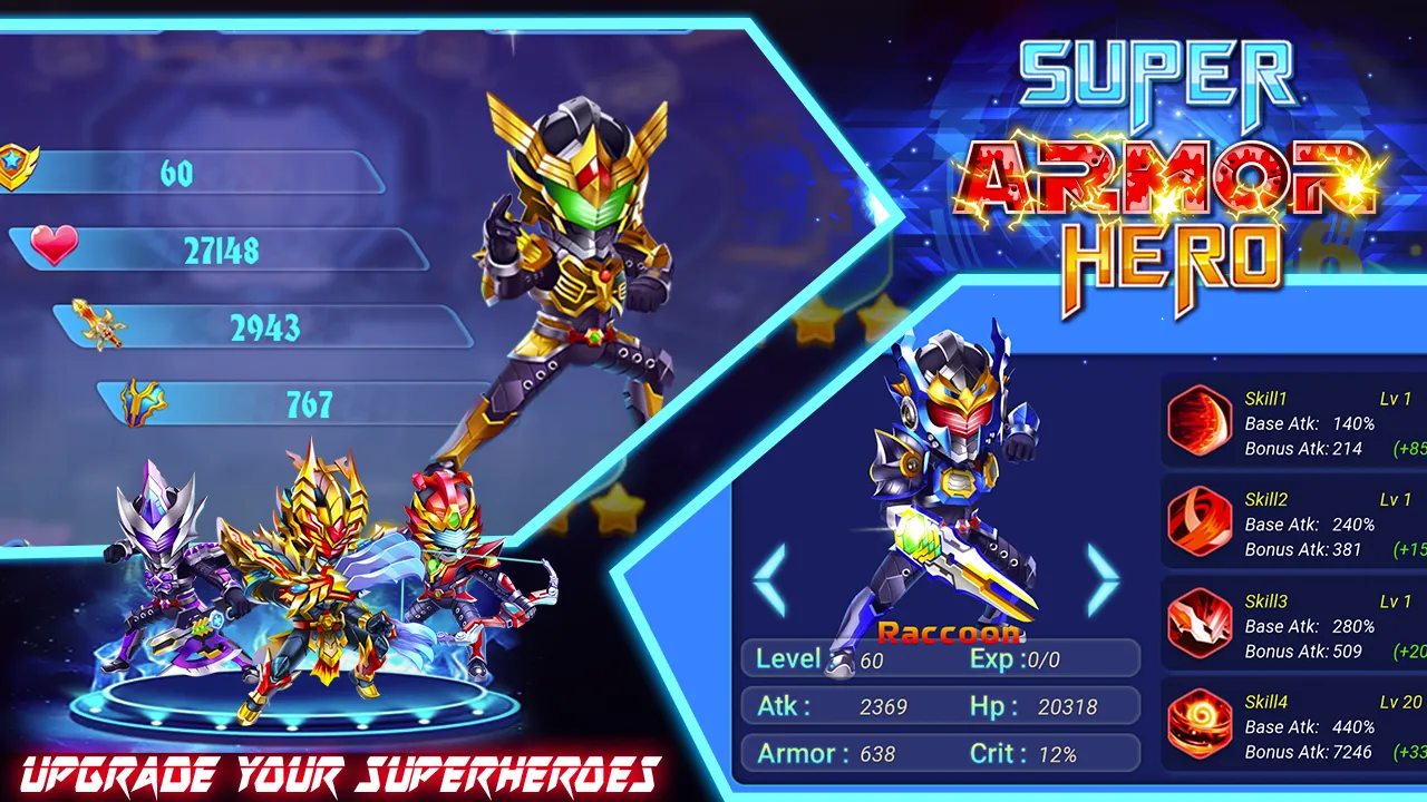 - Classic role-playing game with superheroes, each super hero has unique skills and powerful weapons.