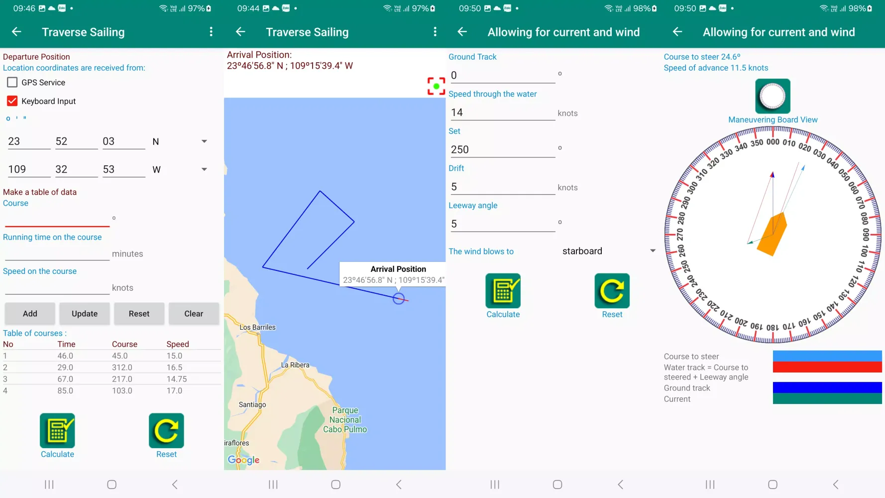 Nautical Calculators is an essential tool for sailors and maritime professionals. It supports users in solving critical problems related to maritime navigation and maneuvering. The free version of this application can be found here.