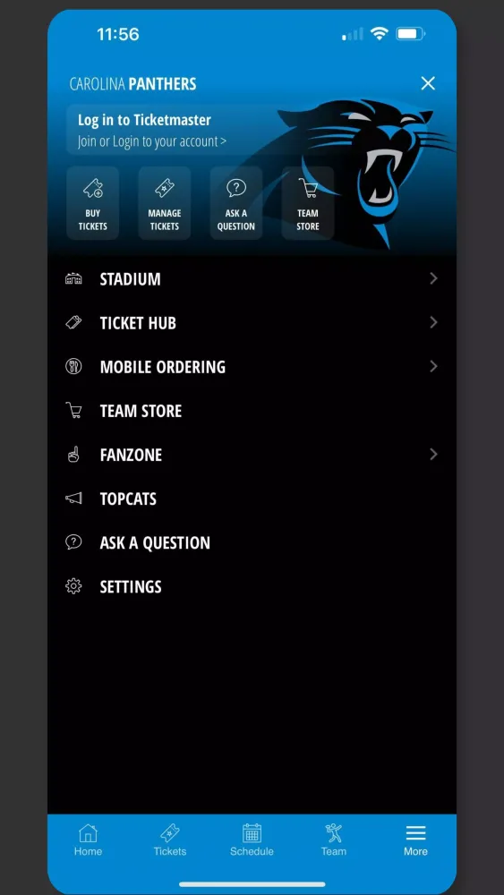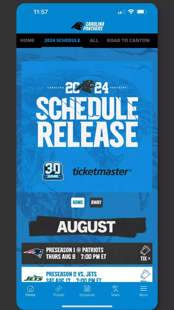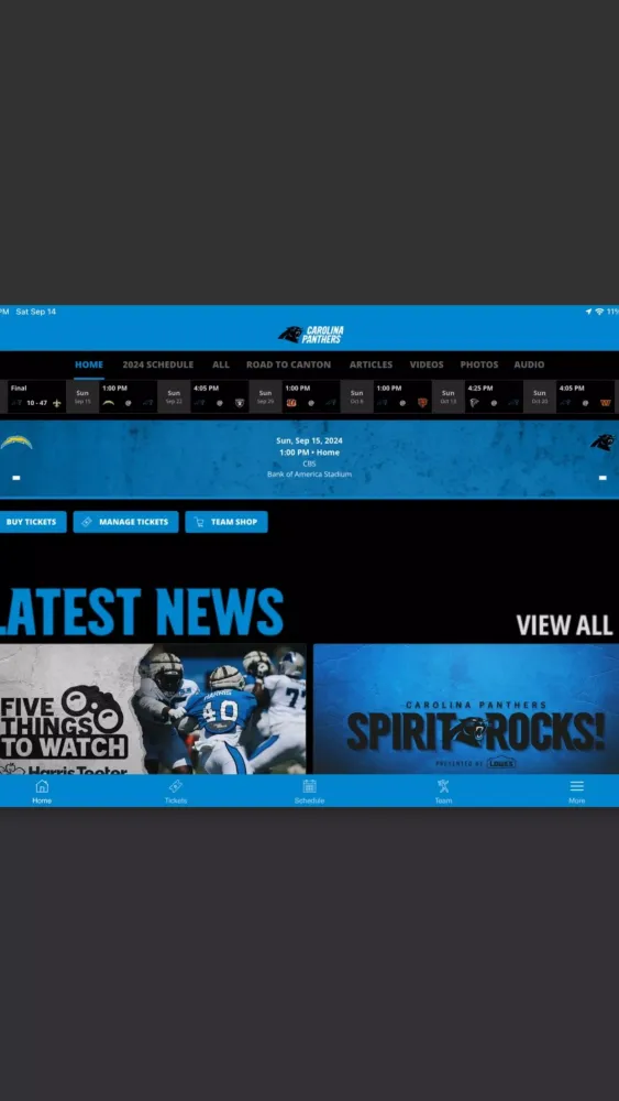 The Carolina Panthers Mobile app is your ultimate companion for staying connected with the team, whether you're at the stadium or cheering from afar. Download the official Panthers app today to experience the Panthers like never before.