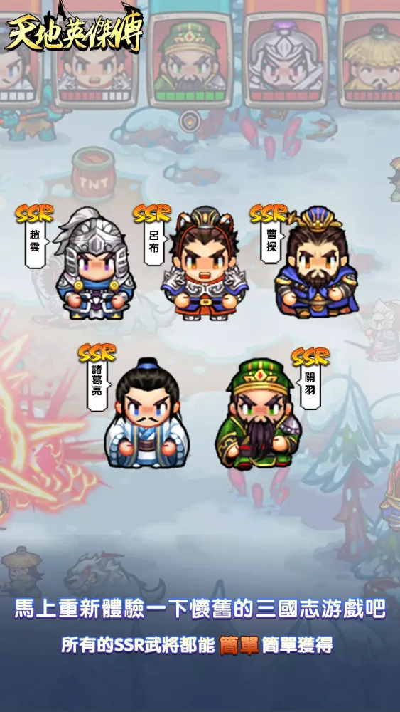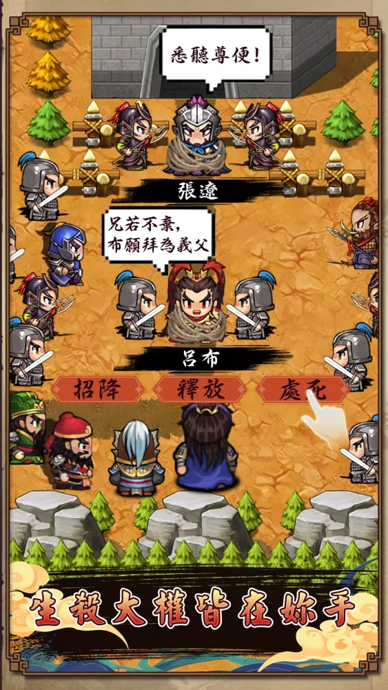 Recruit powerful allies like Guan Yu, Zhang Fei, Zhao Yun, Ma Chao, Zhuge Liang, Liu Bei, Cao Cao, Sun Quan, Lu Bu, and Diao Chan. Equip them with legendary steeds and weaponry, and lead them into battle. Assemble a formidable army and unite the land under your rule.