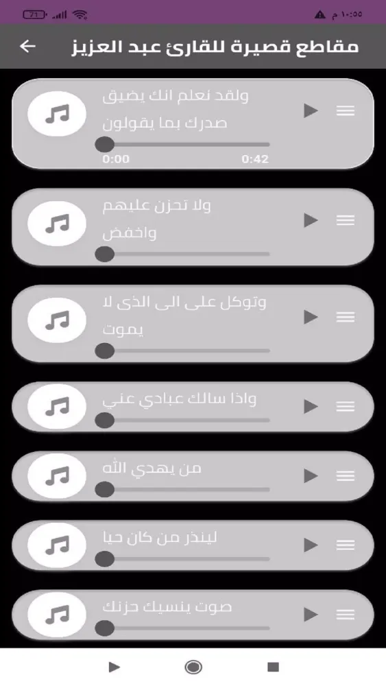- Additional Audio Clips: Beyond the surahs, the app provides short, meaningful audio clips by the reciter, offering diverse listening experiences throughout your day.