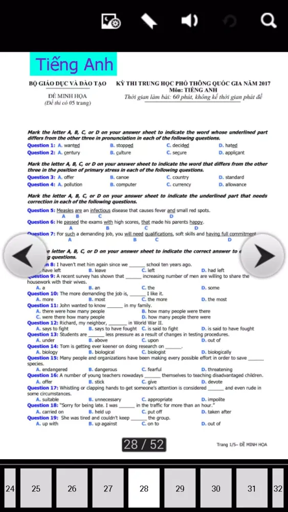 Moreover, the application emphasizes accessibility by being entirely free of charge. There are no hidden costs or subscription fees, making it an inclusive tool available to anyone seeking to enhance their knowledge and skills. Whether you're aiming for top-tier universities or simply want to excel academically, De thi minh hoa 2017 serves as a valuable resource in your educational toolkit.