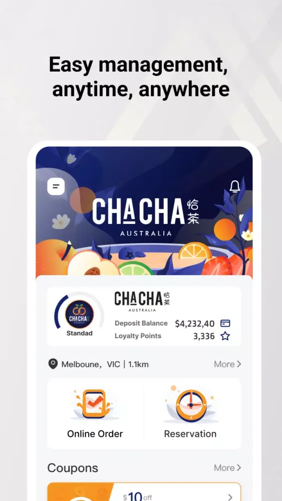 With the Cha Cha app, managing your loyalty membership has never been easier. Enjoy exclusive benefits such as accumulating points, redeeming coupons, receiving special birthday gifts, and staying updated on exciting event promotions. Our app allows you to seamlessly track all these perks in one convenient place.