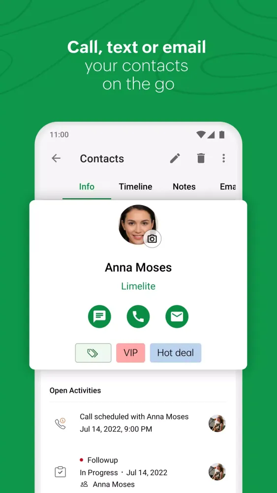 - Schedule events, tasks, and calls, and set reminders directly from the app.