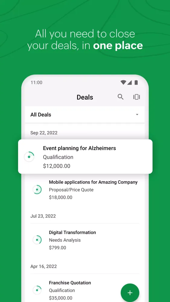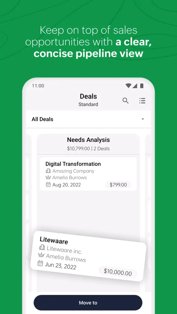 - Create and manage individual deal pipelines for each process in your daily sales cycle.