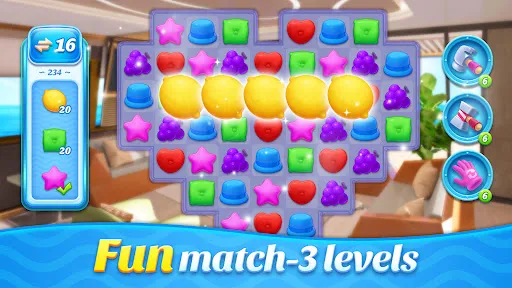 The yacht in the game is close to reality, matching different styles of decor in your design. To get more design inspiration, you need to solve the match-3 puzzles. Trust me, the match-3 part is just as exciting as the building part!