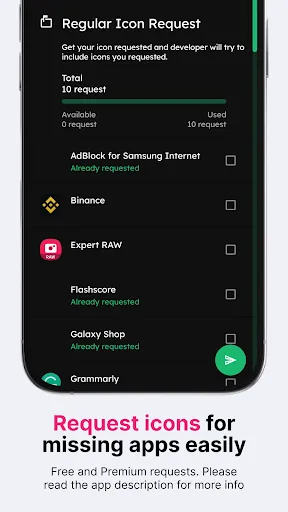 Tap to send icon requests (Free and Premium)