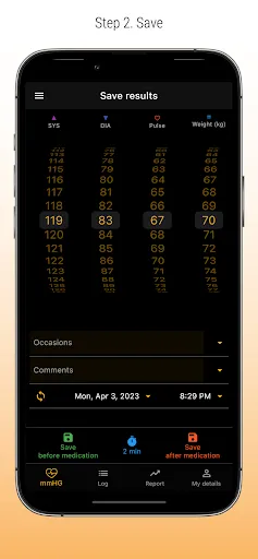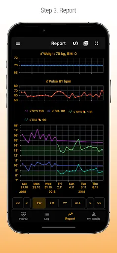 Save your systolic and diastolic readings and pulse and weight. You'll then get comprehensive report that includes graphical chart and that is easy to send out to the doctor. Systolic is a great companion for e.g. Omron bp meter users.