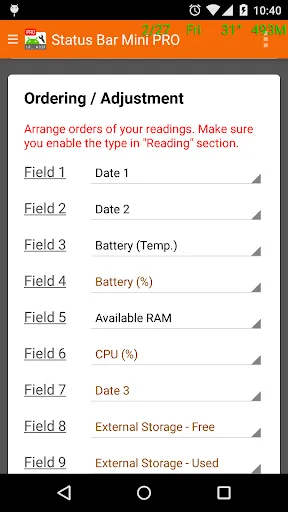 Adds meaningful text readings (text overlay) to your screen. You can add date in different formats, battery level and temperature, available memory (RAM) and CPU reading. You can quickly refer to the statistics at anytime. You can also change their font size, color, order, location, transparency, and layout.