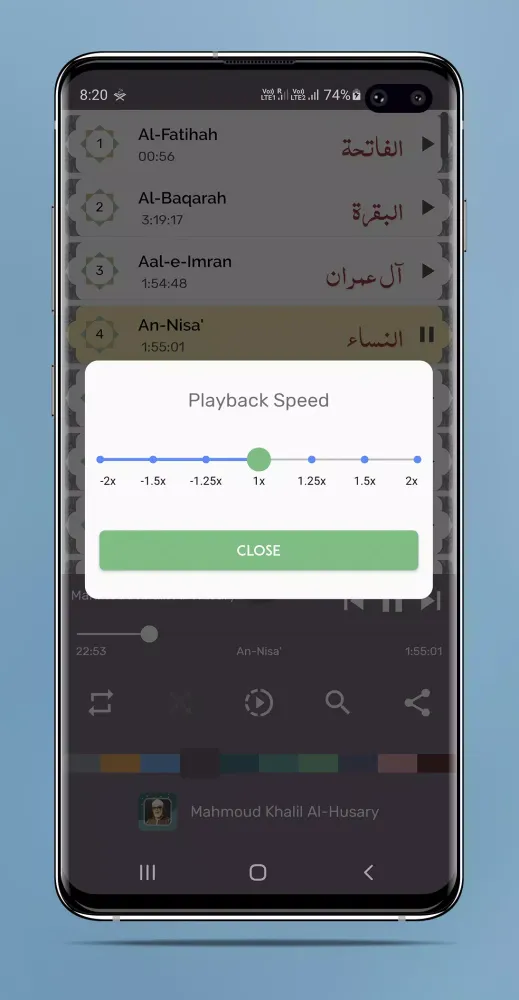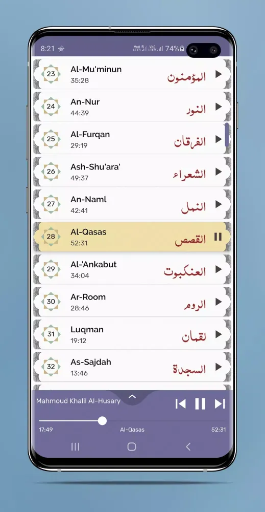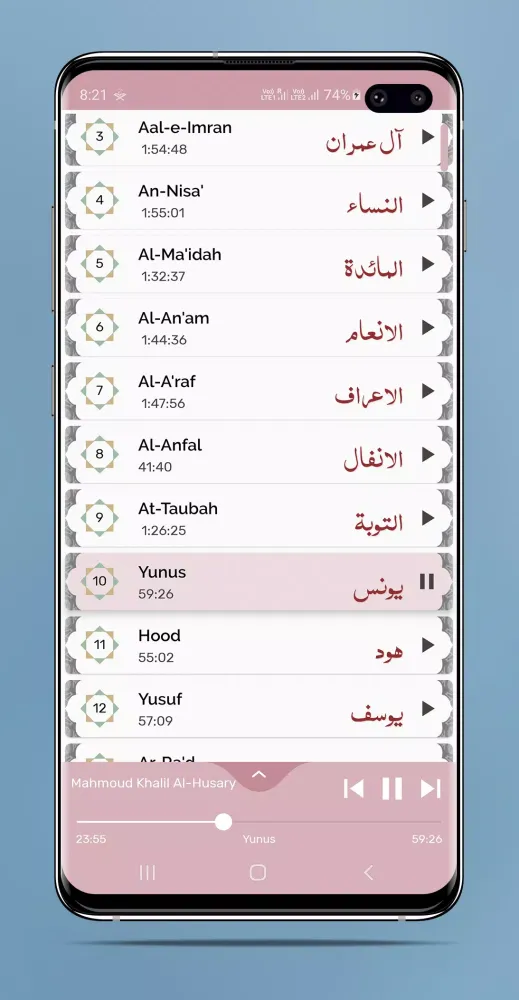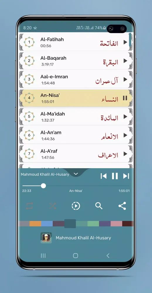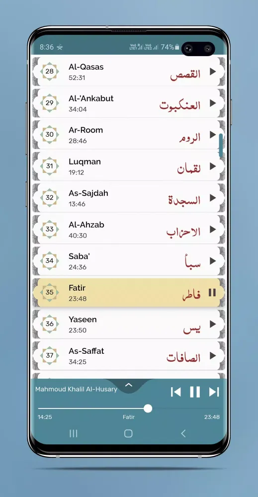 - Seamless Playback: Every Surah plays back-to-back automatically, ensuring a continuous and uninterrupted listening experience.