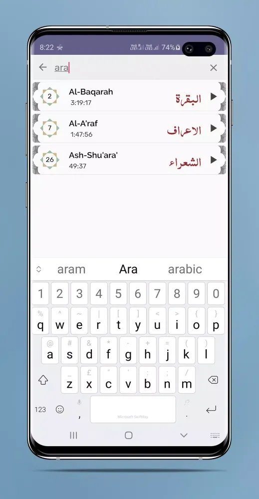 - Search Functionality: Easily find specific Surahs using the built-in search bar.