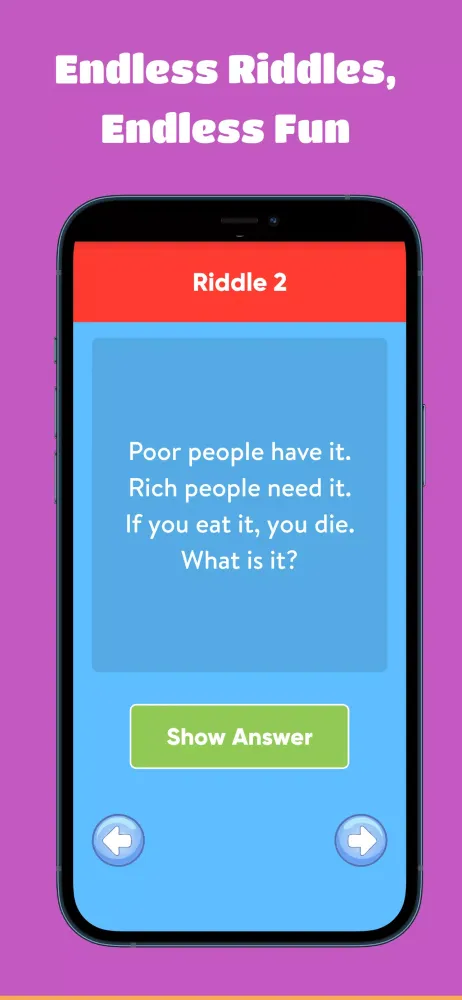 Overall, Riddles With Answers is a must-have app for anyone who loves a good mental workout. Its user-friendly design and engaging content make it perfect for solo play or group activities with friends. Test your intelligence and see how many riddles you can solve. Are you ready to take on the challenge?