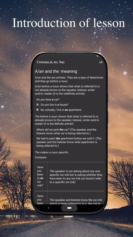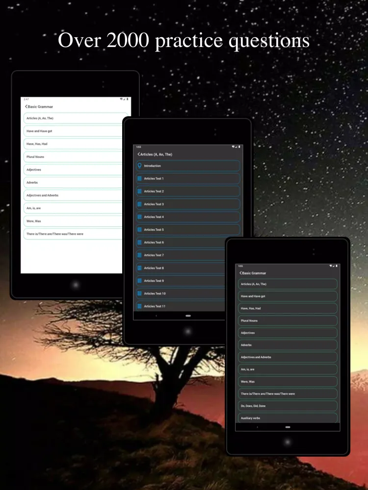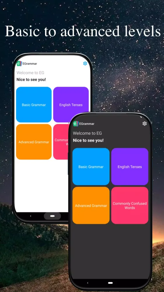 Practice & Test Mode: Strengthen your skills through practice exercises, or challenge yourself with test mode to evaluate your comprehension of each grammar topic.